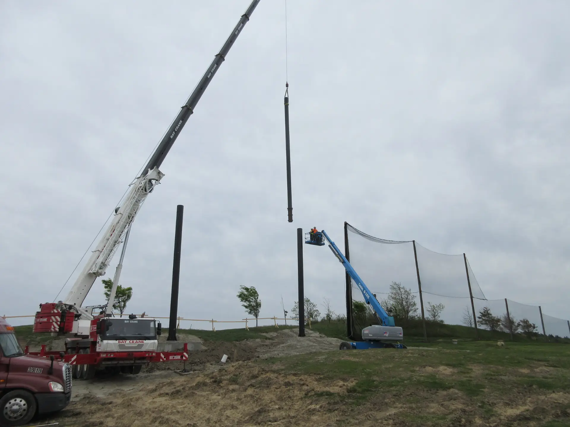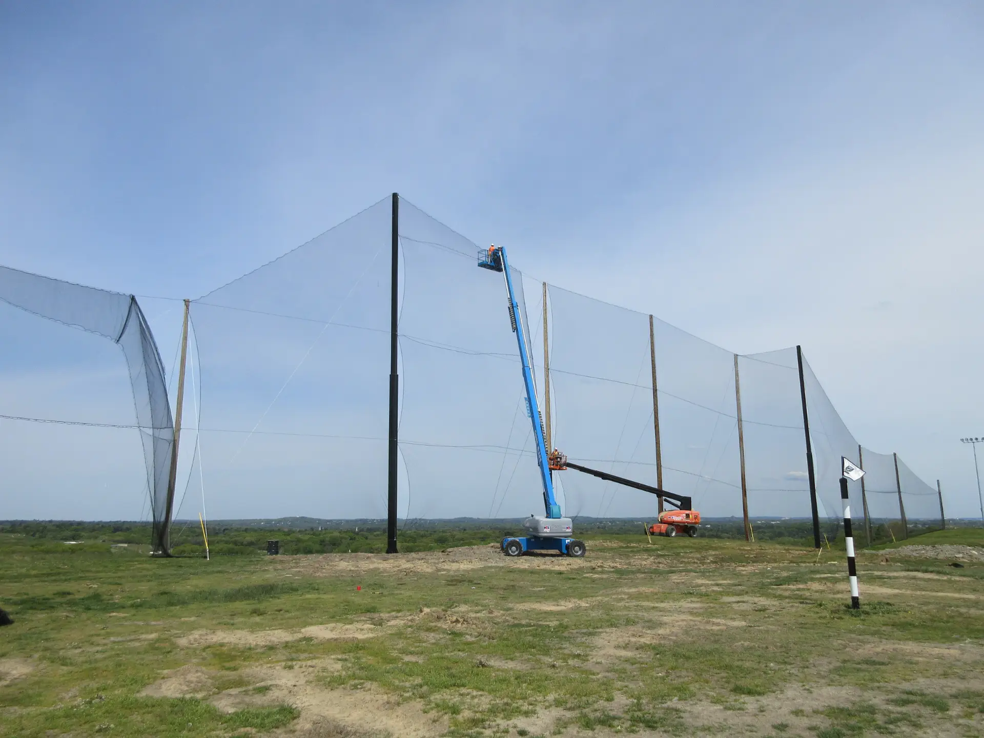 The work included new steel support poles and nearly 70,000 square feet of engineered golf netting.